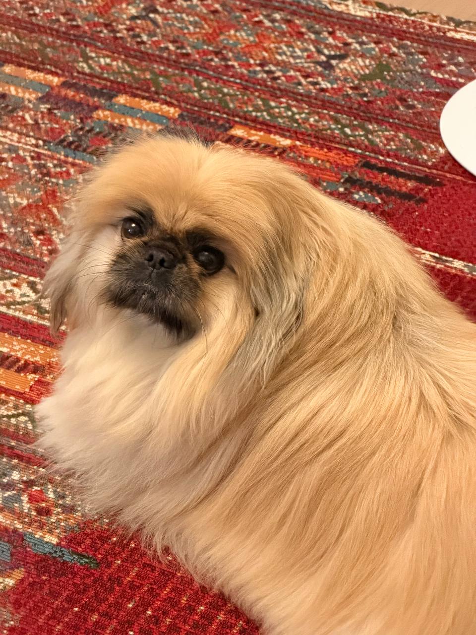 Descended from dogs that lived inside imperial palaces — Pekingese bred for the courts of the Chinese emperors, carried in the sleeves of the royal family. Twenty pounds. Boundless opinion. Gloria is the punctuation mark that makes Miranda's sentence land.