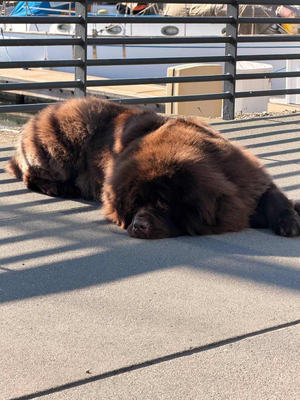 At 160 pounds, Miranda doesn't enter a room — she resolves it. A chocolate Newfoundland with a coat the color of aged espresso, she brings architectural weight to every frame. Strangers stop mid-sentence. Campaigns built around her stillness outperform everything louder.
