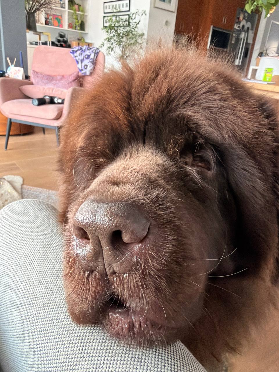 At 160 pounds, Miranda doesn't enter a room — she resolves it. A chocolate Newfoundland with a coat the color of aged espresso, she brings architectural weight to every frame. Strangers stop mid-sentence. Campaigns built around her stillness outperform everything louder.